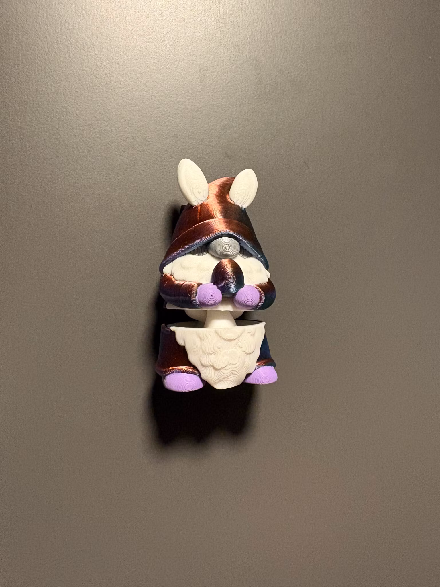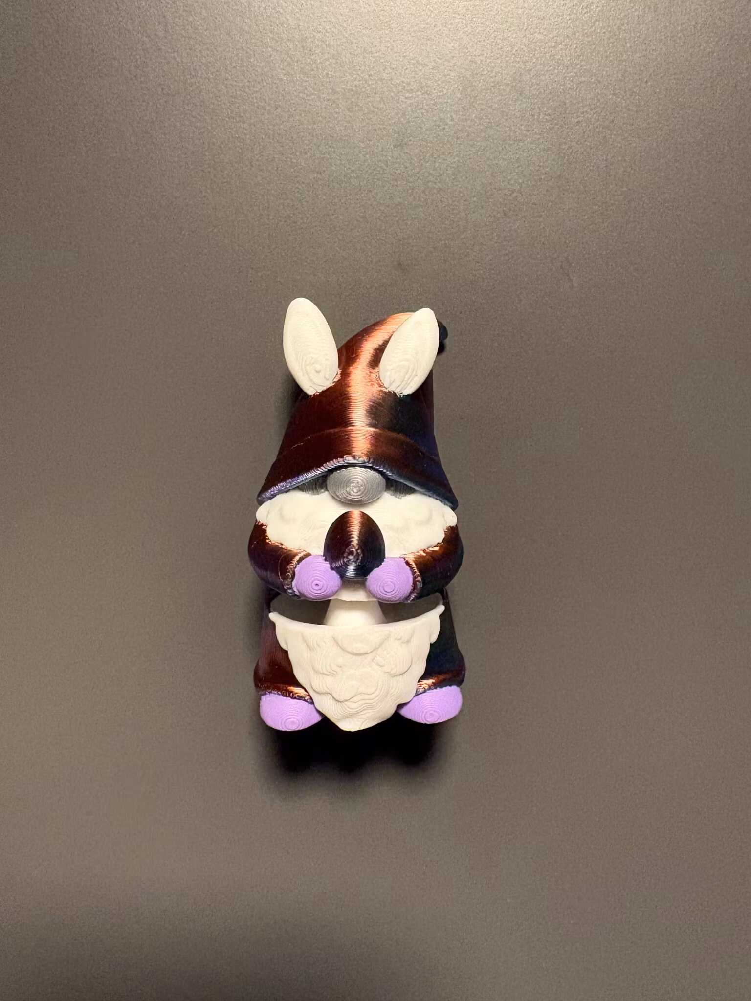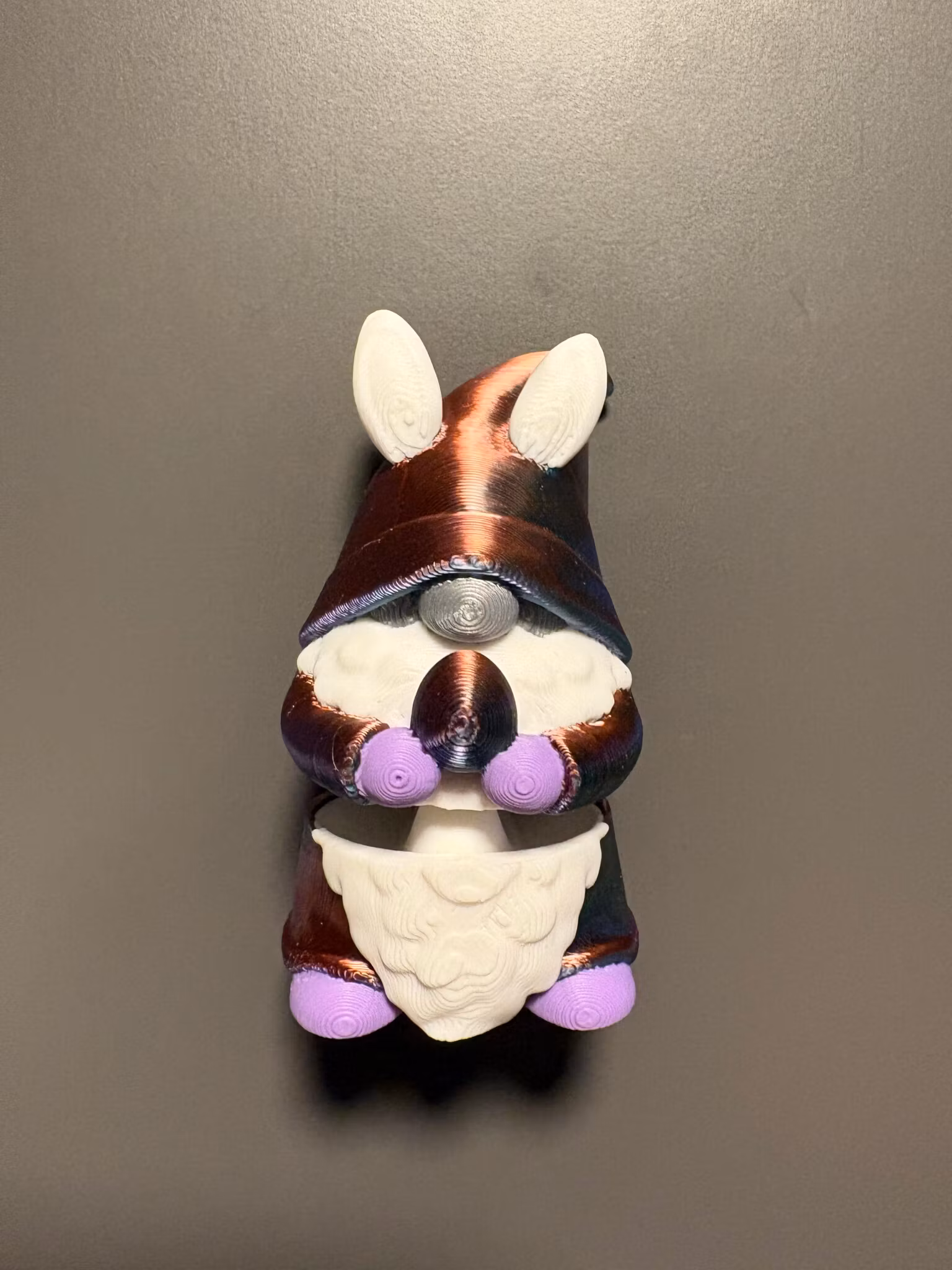 Gnomen Gnomy har kledd seg ut til påske med kaninører og påskeegg